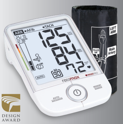 BPM-DIGIT-X9 DETECT : Model X9, 2 Modes: Automatic & Ausculatory- Detection of Arrhythmia (ARR) ,Atrial Fibrillation(AFib), Premature Contraction (PC), Tachycardia (TACH) , Bradycardia (BRAD), Hypertension Risk Indication – Jumbo size screen LCD size: 99*115 mm- Cuff & movement detection-AC Adaptor -Lifetime calibration -PC link optional- Supplied with 3x cuffs sizes (S,M,L