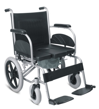EQUI-COMM-DELUXE : Model FS609 / YB609LU52 Wheelchair Commode Foldable – Detachable Arm/ Footrest – Height Floor-to-Seat 49cm- Foot Rest adjustable-Front wheel size 20cm , rear wheel size 40cm ,, Net weight 14Kg- max weight 100kg