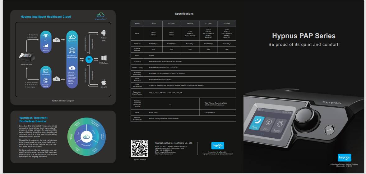 high-performance ultra-quiet operation (≤29dB at 10cmH2 O), creating a quiet sleep and treatment environment for the user with affirmatory efficacy.