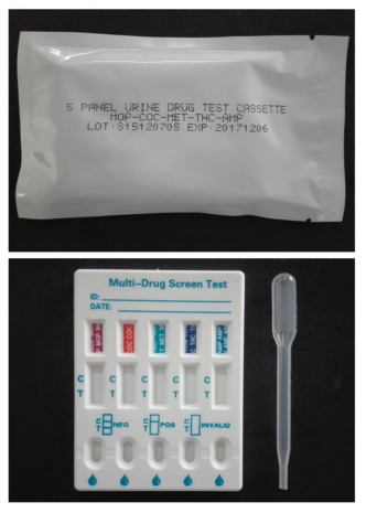 TEST-DRUGPANEL5 : Pack of 25x Tests of : •MOP (MORPHINE) • THC (MARIJUANA or DAGGA or TETRAHYDROCANNABINOL • MET (TIK or METHAMPHETAMINE) • COC (COCAINE) • AMP (AMPHETAMIN)