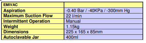 EQUISUCFOOT-EMIV : No Lubrication Foot operated suction unit with 400ml autoclavable jar,1.15Kg ,capacity 300mm Hg , maximum suction 22L/mn (suitable for emergencies