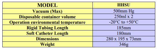 EQUISUCHAND250 : With disposable 250ml container ( plus1 x spare), 346g , capacity 500mm Hg