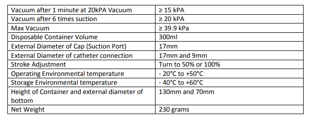 EQUISUCHAN300: With disposable 300ml container 230g , capacity between 15KPa -39Kpa